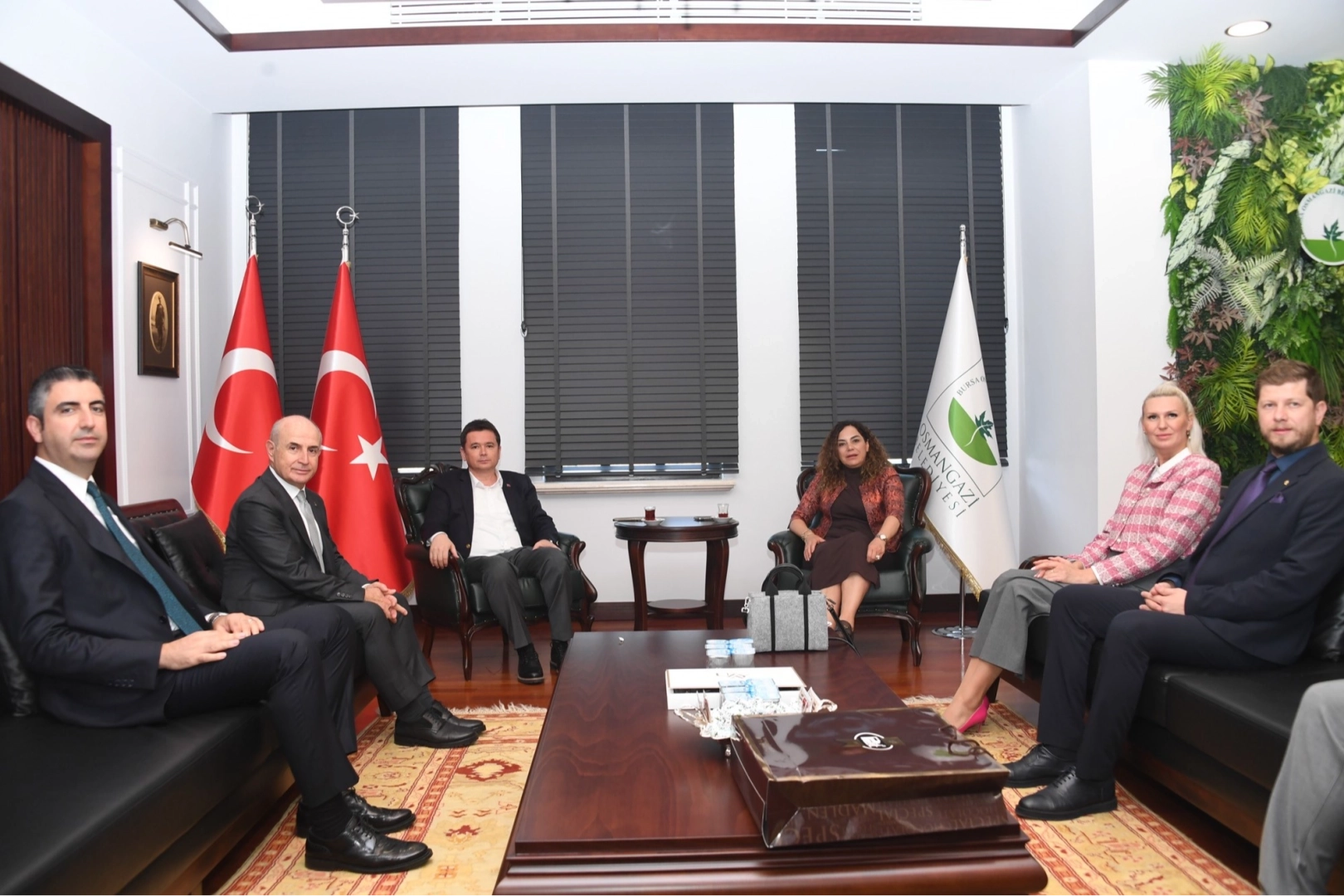 Belediyeler Birliği Toplantısı için Bursa’ya gelen Tekirdağ Büyükşehir Belediye Başkanı Candan Yüceer, Bilecik Belediye Başkanı Melek Mızrak Subaşı, Büyükçekmece Belediye Başkanı Hasan Akgün ve Kartal Belediye Başkanı Gökhan Yüksel, Osmangazi Belediye Başkanı Erkan Aydın’ı ziyaret etti. Belediye binasındaki makamında ağırladığı misafirlerine sosyal belediyecilik anlayışıyla yapmış oldukları çalışmalar hakkında bilgiler veren Başkan Aydın, mazbatayı almalarının ardından geçen her günü, Osmangazi’ye ve Osmangazili yurttaşlara en güzel hizmetleri sunabilmek için geçirdiklerini söyledi. Misafir belediye başkanları da kendi il ve ilçelerinde yaptıkları çalışmalarla ilgili bilgiler verdi.