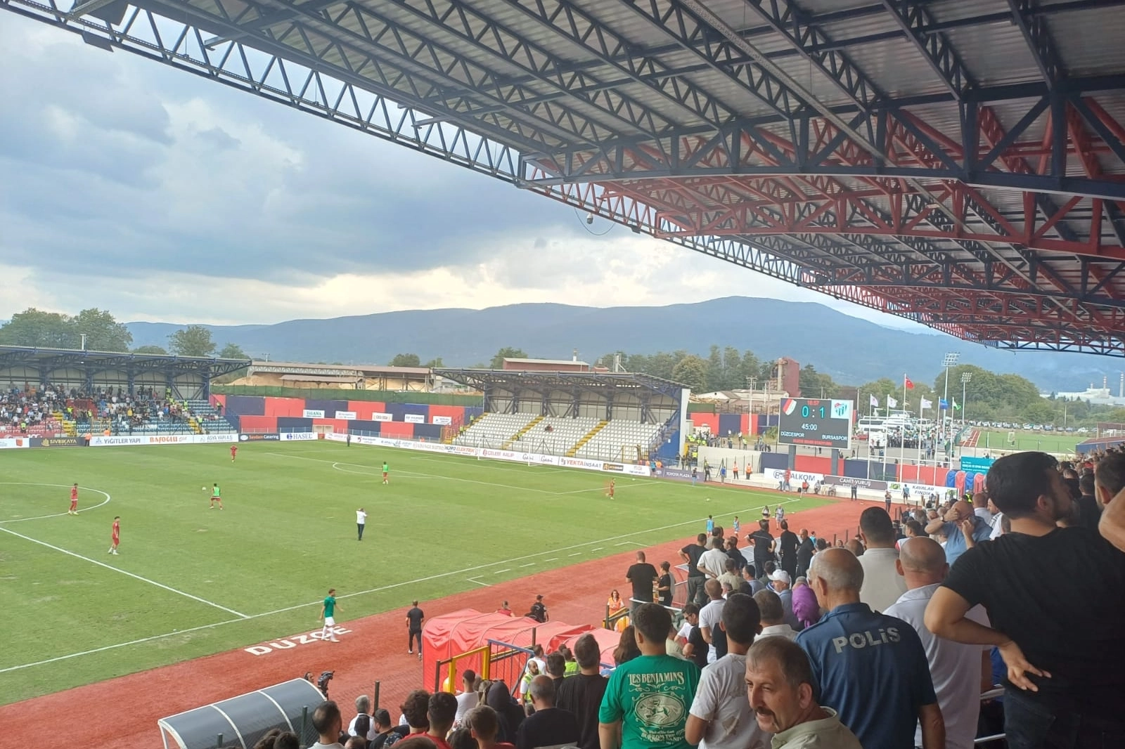 Düzce deplasmanında olaylar yaşanmaya devam ediyor. Bursaspor taraftarı polisin dışarıda kalan taraftarlara yaptığı sert müdahale sonrası protesto ederek tribünleri terk etme kararı aldı.
