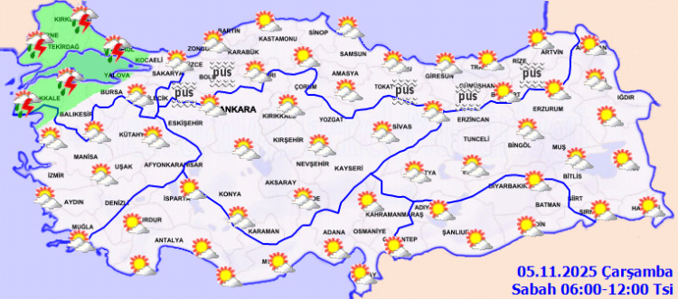 Meteoroloji Genel Müdürlüğü, 5 Kasım Çarşamba gününe ilişkin hava tahmin raporunu yayımladı.