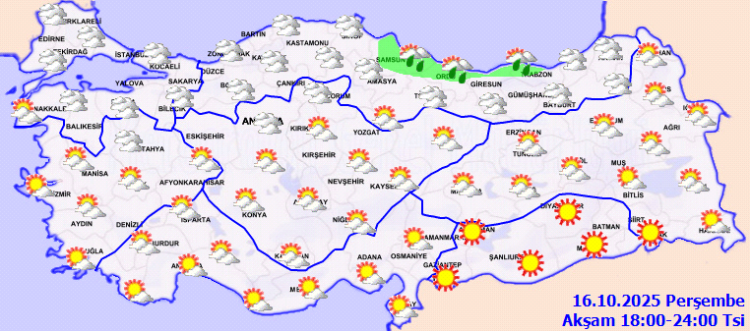 Meteoroloji Genel Müdürlüğü, 16 Ekim Perşembe gününe ilişkin hava tahmin raporunu yayımladı.