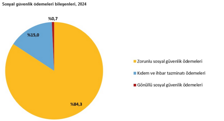 Sosyal güvenlik ödemeleri içinde ise zorunlu sosyal güvenlik ödemeleri yüzde 84,3 ile en büyük payı aldı.