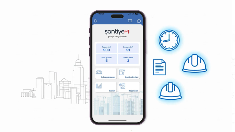 Çevre, Şehircilik ve İklim Değişikliği Bakanlığı’na bağlı Mesleki Hizmetler Genel Müdürlüğü tarafından hazırlanan Şantiye-M uygulamasıyla, şantiyelerde tutulan geleneksel şantiye defterleri dijital ortama taşındı. Şantiye şefleri, işin hangi bölümlerinde çalışıldığını, ilerleyişini, günlük faaliyet raporlarını, personel ve ekipman durumlarını mobil uygulama üzerinden kayıt altına alınmaya başlandı. Böylece şantiye şeflerinin üstlendikleri işler anlık olarak takip edilebiliyor.
