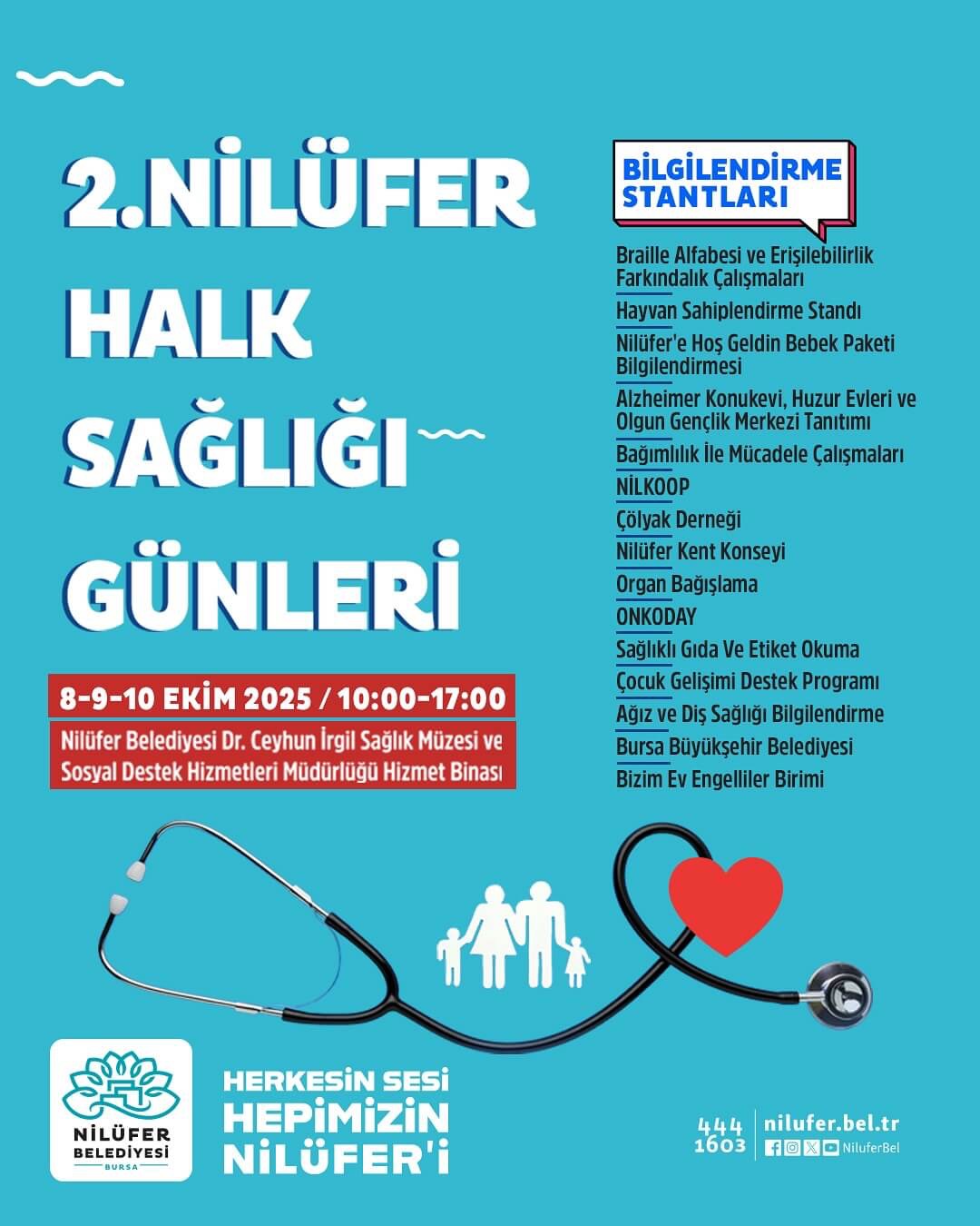 Nilüfer Belediyesi, halk sağlığını koruma ve geliştirme amacıyla önemli bir organizasyona imza atıyor. 8-9-10 Ekim 2025 tarihlerinde gerçekleştirilecek “2. Nilüfer Halk Sağlığı Günleri” etkinliği, Nilüfer Belediyesi Sosyal Destek Hizmetleri Müdürlüğü Hizmet Binası'nda vatandaşların hizmetine sunulacak.