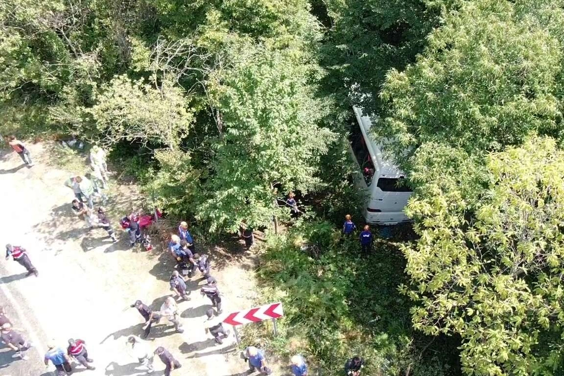 Ayrıca, otobüs kazasının yaşandığı keskin virajlı yokuş aşağı olan yollar ve otobüsün uçtuğu alan havadan görüntülendi.