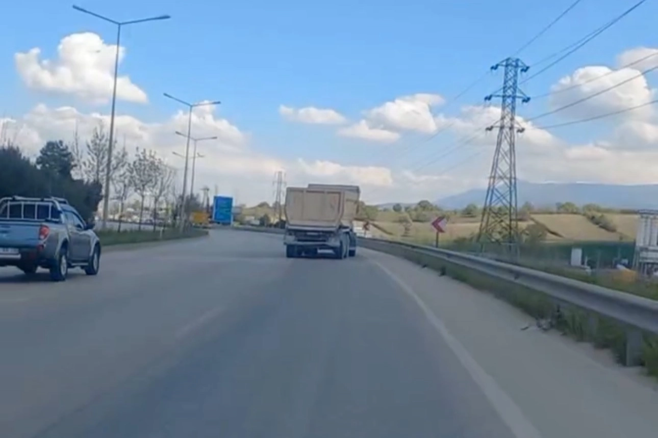 Olay, merkez Nilüfer ilçesi İzmir Yolu Caddesi üzerinde meydana geldi. Edinilen bilgiye göre, trafikte seyreden aksı yamuk tırı gören diğer sürücüler gözlerine inanamadı.