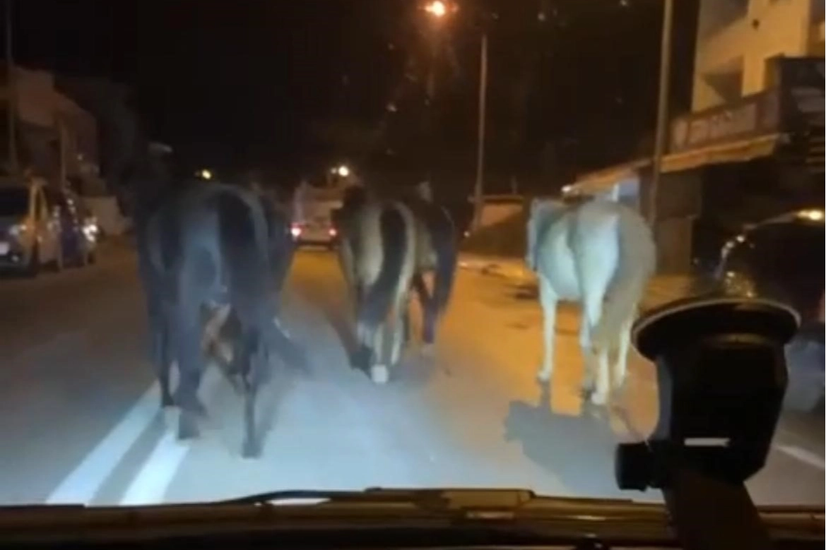 Atların dakikalarca cadde üzerinde ilerlediği görülürken, bir süre sonra gözden kayboldu.