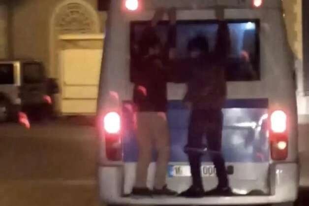 Bursa’da çocukların minibüs arkasındaki tehlikeli yolculuğu cep telefon kamerasına yansıdı.