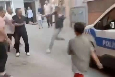 Bursa’da daha önceden aralarında husumet bulunan 2 aile sokak ortasında taş ve sopalarla birbirlerine girdi. Kavga anı ise kameraya saniye saniye yansıdı.