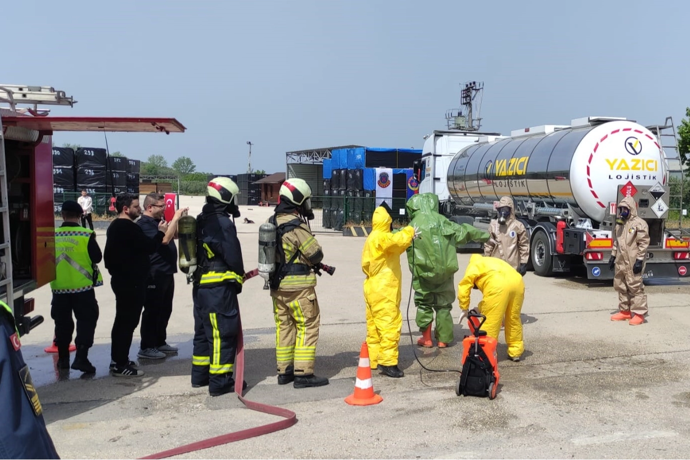 Kurtul Polis ve Jandarma kontrol noktasında yapılan tatbikata Gemlik Kaymakamı Hasan Göç, Belediye Başkanı Şükrü Deviren, Şoförler Odası Başkanı Mehmet Cessur ve İlçe Jandarma Komutanı Ahmet Turan Toksoy katıldı. Nefes kesen tatbikatta, tehlikeli madde taşıyan ve gaz kaçağı olan bir tır jandarma eskortluğunda güvenli alana alınarak itfaiye ve AFAD ekiplerinin müdahalesi ile kontrollü olarak müdahale edildi.