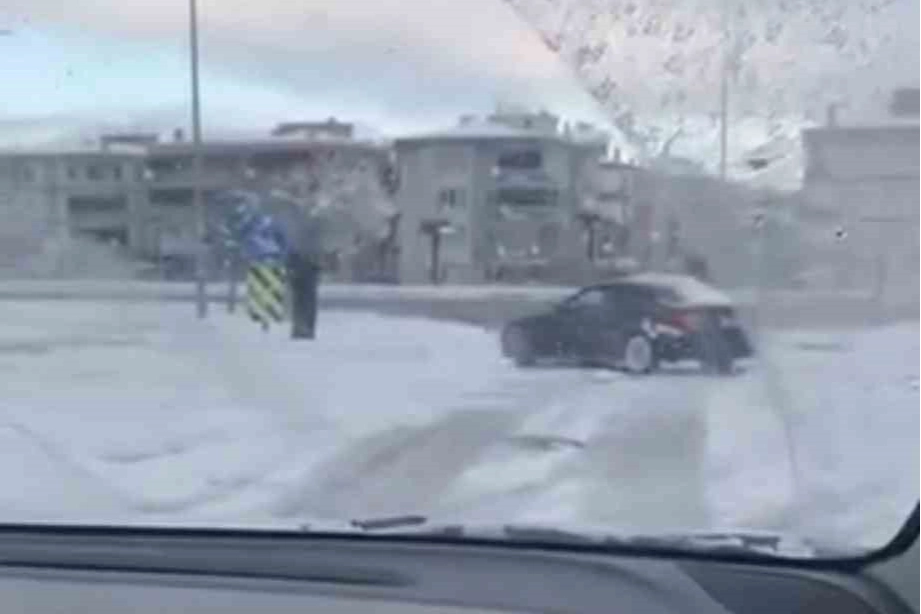 Kentte etkili olan kar yağışıyla birlikte kayganlaşan yollarda tehlikeli anlar yaşandı. Kar yağışını fırsat bilen bir sürücü, otomobiliyle kavşakta drift atarak trafik güvenliğini hiçe saydı. O anlar çevredeki bir vatandaş tarafından cep telefonu kamerasıyla kaydedildi.
