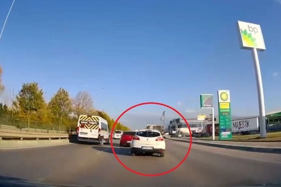Olay, dün sabah saatlerinde Bursa'nın Nilüfer ilçesi Görükle Kavşağı yakınları İzmir Yolu üzerinde meydana geldi. Otomobil sürücüsü makas atarak yol değiştirdiği sırada kazayı kıl payı atlattı. Sürücü, yaşanan bu tehlikeli durumu fark etmeyerek yoluna devam ederken, o anlar araç kamerasıyla kayda alındı. Harekete geçen polis, o sürücüyü tespit edip, bin 506 lira ceza kesti.