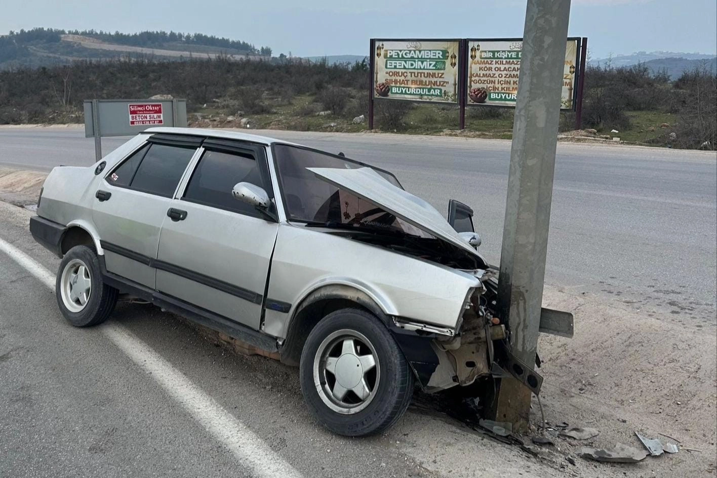 Bursa’da otomobil direğe çarptı, 1 yaralı