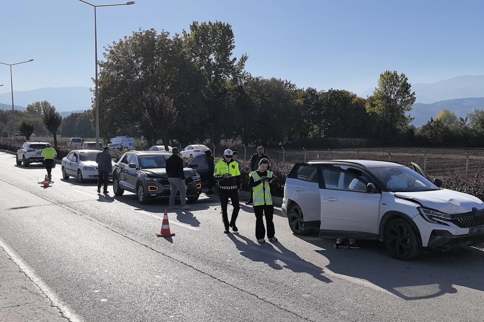 Kaza, saat 14.30 sıralarında Kemalpaşa Mahallesi Ahmet Türkel Çevre Yolu üzerinde meydana geldi. Çevre yolunda seyir halinde olan Sürücü Hasan Y.(41) yönetimindeki 16 BGC 183 plakalı cip, sürücüsünün kontrolünden çıkarak önünde seyreden aday sürücü Nurten S.(53) yönetimindeki 34 EPS 825 plakalı sürücü kursu aracına çarptı. Arkadan gelen Sürücü Nurhan P.(45) yönetimindeki 16 NP 800 plakalı cip de kaza yapan 16 BGC 183 plakalı cipe arkadan çarparak durdu. Kaza sonucu sürücüler ile cipteki yolcular Ayça S.(12) ve Cemre Y.(12) ve otomobildeki direksiyon eğitmeni Nurcan U.(45) yaralandı. Yaralılar kaza yerine sevk edilen ambulanslarla İnegöl Devlet Hastanesine kaldırıldılar. Polis kazayla ilgili soruşturma başlattı.