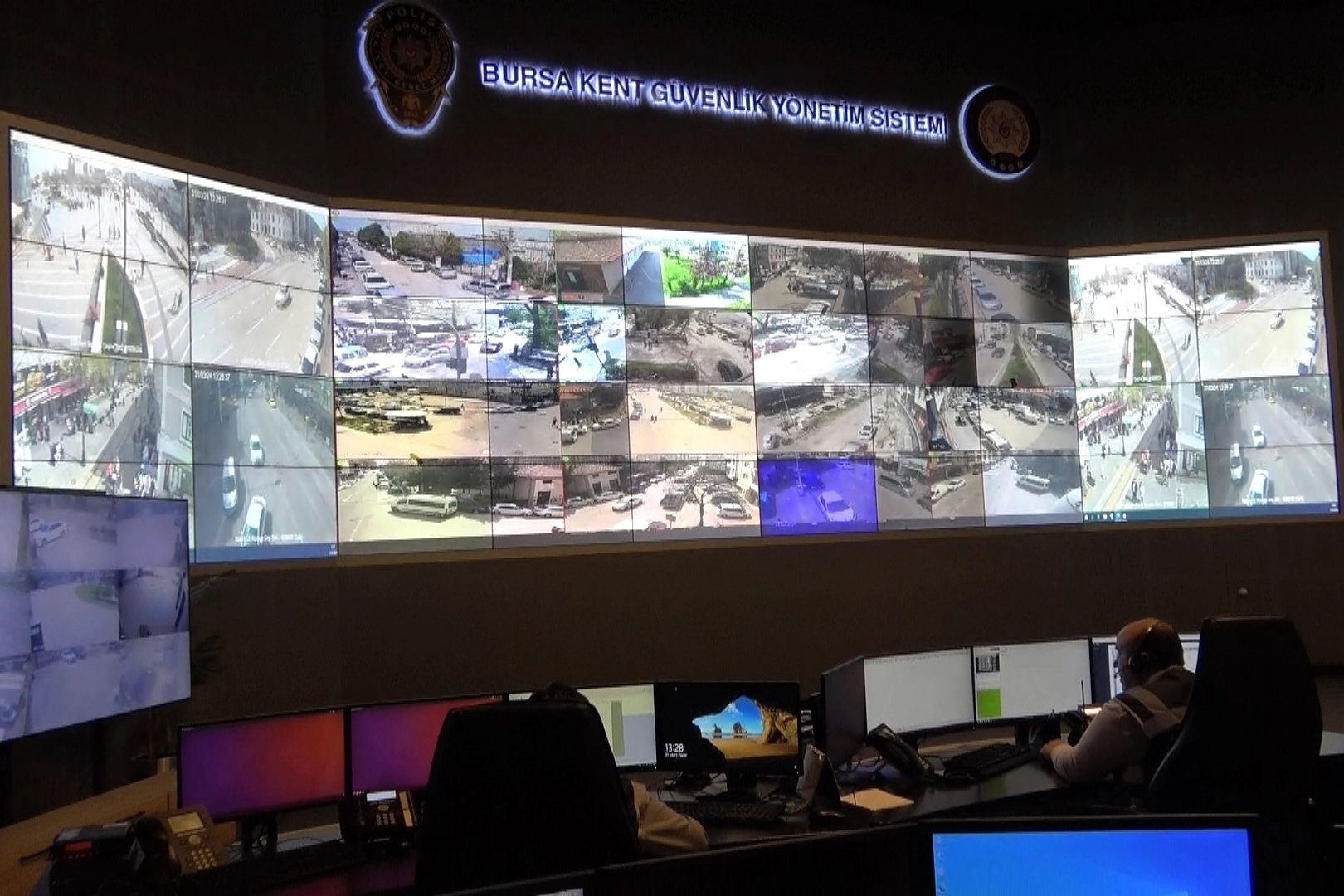Bursa İl Emniyet Müdürlüğü Bilgi Teknolojileri ve Haberleşme Şube Müdürlüğü'ne bağlı Kent Güvenliği Yönetim Sistemi Merkezi'nde Mahalli İdareler Genel Seçimleri'nde oy verme işlemleri sürerken Bursa polisi şehirde adete kuş uçurtmuyor. 450 farklı noktada bulunan ve sayısı bin 500'den fazla KGYS kameraları ile anbean takip edilen şehir merkezinde şuana kadar herhangi bir olumsuz durum yaşanmadı.