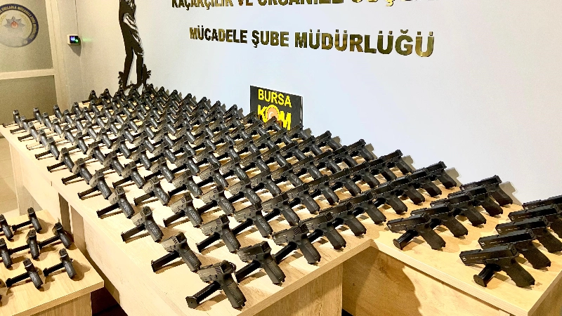 Bursa İl Emniyet Müdürlüğü Kaçakçılık ve Organize Suçlarla Mücadele Şube Müdürlüğü Organize Suçlar Büro Amirliği ekipleri, 'Ruhsatsız Silah İmal ve Ticareti' suçuna yönelik operasyon düzenledi. İl dışından Bursa'ya çok fazla sayıda ruhsatsız tabanca sevkiyatı yapılacağı bilgisini alan ekipler, teknik ve fiziki takibe başladı. D.Ö. isimli şüpheli şahsın Bursa dışından kiraladığı araç ile suçu kamufle etmek ve dikkat çekmemek amacıyla eşi ve çocuklarını yanına alarak ve alternatif güzergahlar kullanarak Bursa'ya geldiği belirlendi. Polis ekipleri Bursa'ya gelen aracı İnegöl girişinde durdurdu. Yapılan aramada aracın bagaj kısmında satışa hazır ayrı ayrı paketlenmiş toplamda 150 adet tabanca yakalandı. Dana önce de benzer suçlardan çok sayıda suç kaydı bulunan şüpheli D.Ö., çıkarıldığı mahkemece tutuklandı.
