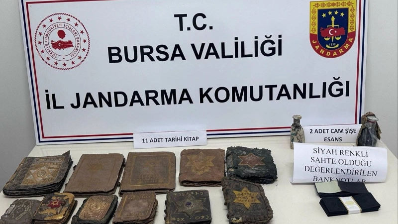 Bursa'nın İnegöl ilçesinde jandarma tarafından bir köy evine yapılan operasyonda çok sayıda altın yazmalı kitap ile siyah dolar banknotlar ele geçirildi. Bir kişi gözaltına alındı. Alınan bilgiye göre, Yeniceköy Mahallesi'nde ikamet eden 49 yaşındaki İ.H.M isimli kişinin tarihi eserleri bulundurduğu ihbarı üzerine Savcılığın izniyle jandarma harekete geçti.