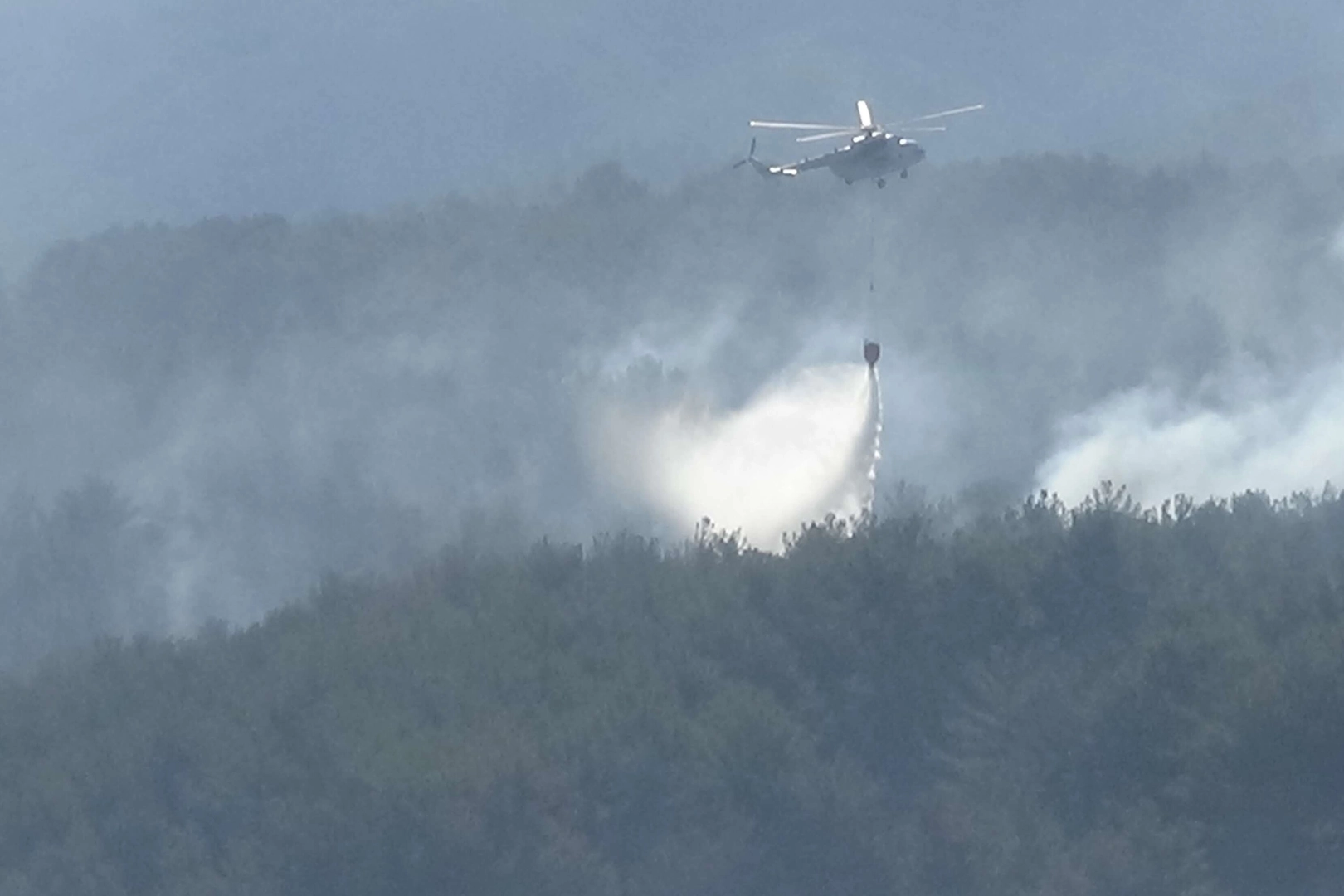 Gece boyunca yapılan söndürme çalışmalarına sabah saatlerinde çok sayıda helikopter de katılarak devam edildi. Söndürme çalışmalarına AT-801 Airtractor uçaklarının yanı sıra Orman Genel Müdürlüğüne bağlı Mi-8 ve Mi-17 tipi helikopterler ile Jandarma Genel Komutanlığına bağlı T-70 Black Hawk ve Mi-17 tipi helikopterler, Türk Hava Kurumu’na bağlı CL-215 tipi amfibi uçaklar müdahale ediyor. 4 uçak ve 8 helikopterin yoğun bir şekilde kullanıldığı söndürme çalışmalarında 39 saat geride kalırken, kara ekipleri de çevre illerden gelen takviye ekipler ile güçlendiriliyor.