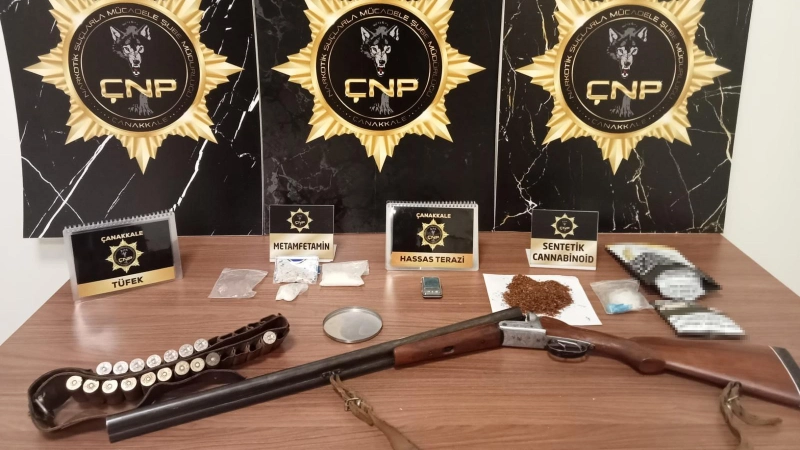 Çanakkale İl Emniyet Müdürlüğü Narkotik Suçlarla Mücadele Şube Müdürlüğü ekiplerince merkez ve Çan ilçesinde 4 şüpheliye yönelik uyuşturucu operasyonu düzenlendi. Operasyonda, yüklü miktarda çeşitli uyuşturucu madde ve uyuşturucu madde imalatında kullanılan hammadde silah, tüfek ve bunlara ait çok sayıda mermi ele geçirildi. 4 şüpheli gözaltına alındı.Şüpheliler emniyetteki işlemlerinin ardından adliyeye sevk edildi. 3 şüpheli savcılıktaki ifadesinin ardından çıkarıldığı mahkemece tutuklandı. 1 şüpheli ise adli kontrol ve yurtdışı çıkış yasağı ile serbest bırakıldı.