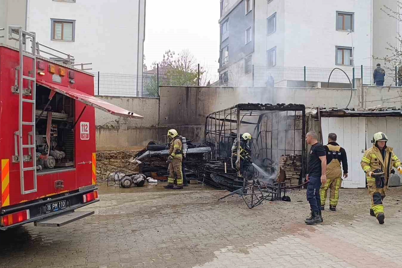 Bursa’nın İnegöl ilçesinde bir sitenin bahçesinde bulunan depoda yangın çıktı. Kısa sürede büyüyen yangında içeride bulunan tüp patlarken, yangın itfaiye ekipleri tarafından söndürüldü.