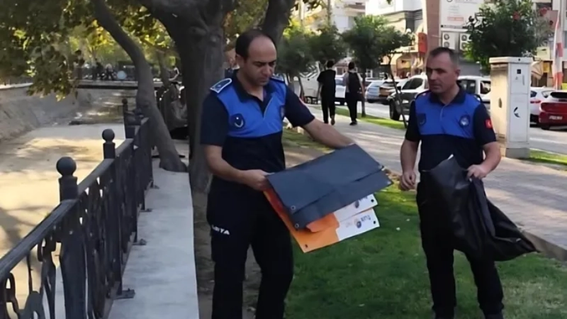 Denetimlerde, kamuya ait alanlara izinsiz olarak asılan afişler toplandı.
