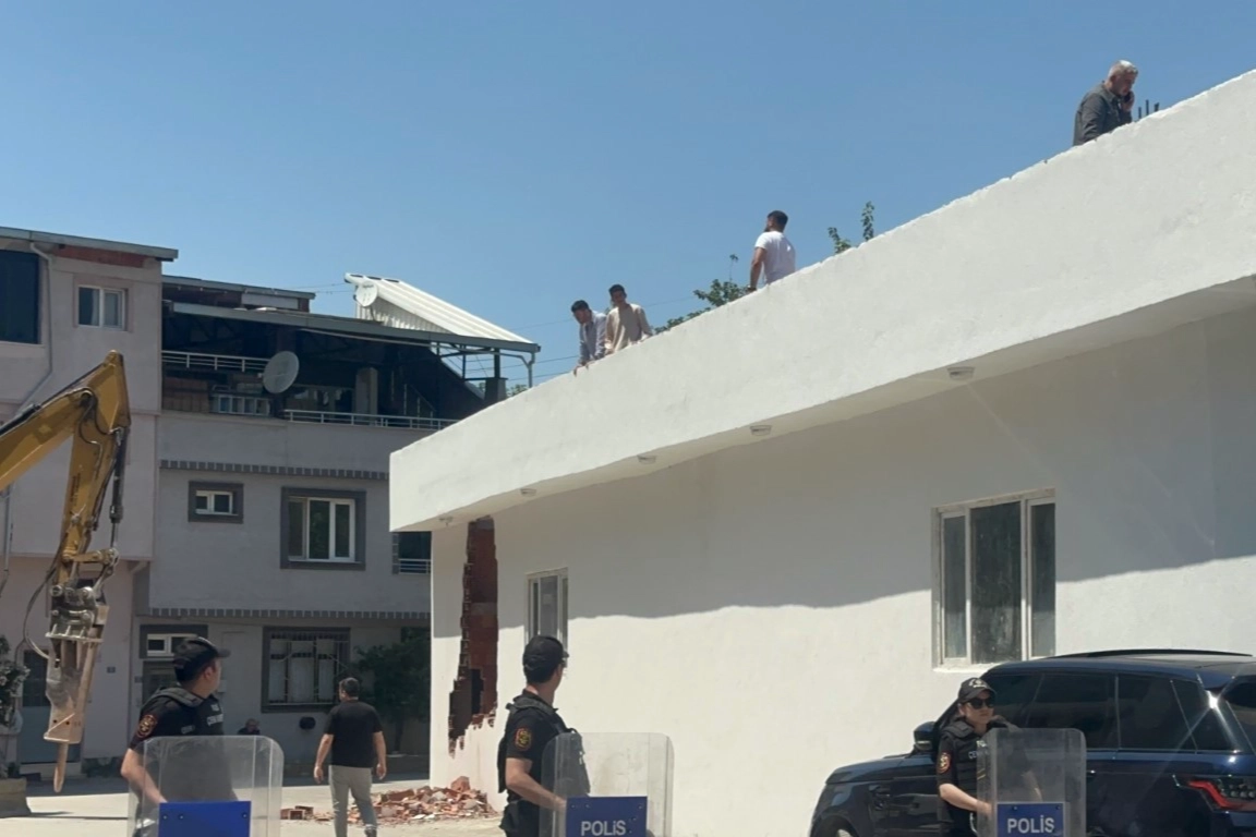 Bina sahiplerinin kaçak olarak yaptığı yapı daha önce 4 kere yıkıldı. "5. defa yıkılmasın" diye bina sahipleri çatıya çıkarak direndi. Zaman zaman etrafa bıçak sallayan şahıs, polisin ikna çabaları sonrası aşağıya indi. Diğer aile üyeleri ise ikna edilirken kaçak yapının bir bölümü yıkıldı. Olayların daha fazla büyümemesi için süre verildi.
