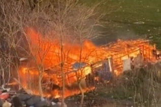 Bursa’nın Karacabey ilçesinde alev alev yanan ağılda şans eseri hayvanlar zarar görmedi.