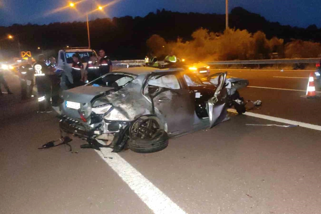 Kaza nedeniyle Otoyolda Kılıç kavşağı savaş alanına döndü. Çarpışan iki otomobilin de motorları yerinden koparak yaklaşık 60 metrelik alana savruldu. Kaza sonrasında bariyerlerde sıkışan otomobil lastiği ise kazanın şiddetini gözler önüne serdi.