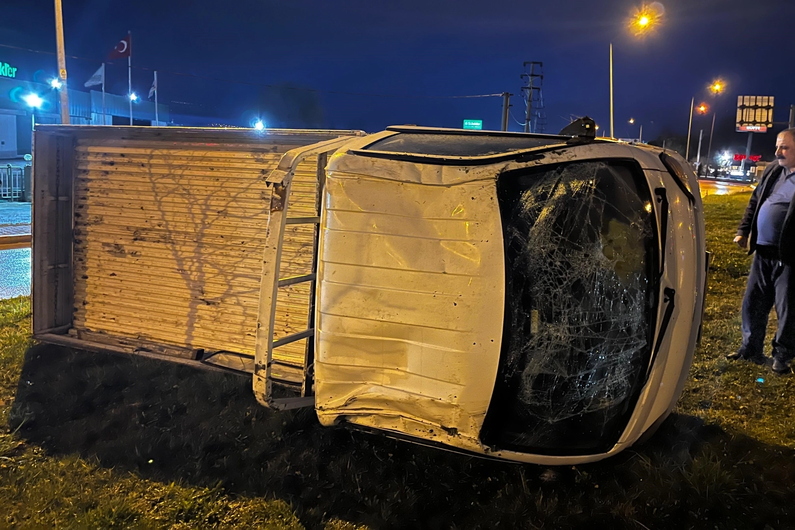 Kaza, saat 19.30 sıralarında Bursa-Ankara karayolu OSB köprülü kavşağında meydana geldi. Bursa'dan gelip İnegöl merkeze dönüş yapmak isteyen sürücü Muzaffer D. yönetimindeki 16 KOZ 62 plakalı kamyonet, kontrolden çıkarak yeşil alan üzerine devrildi.