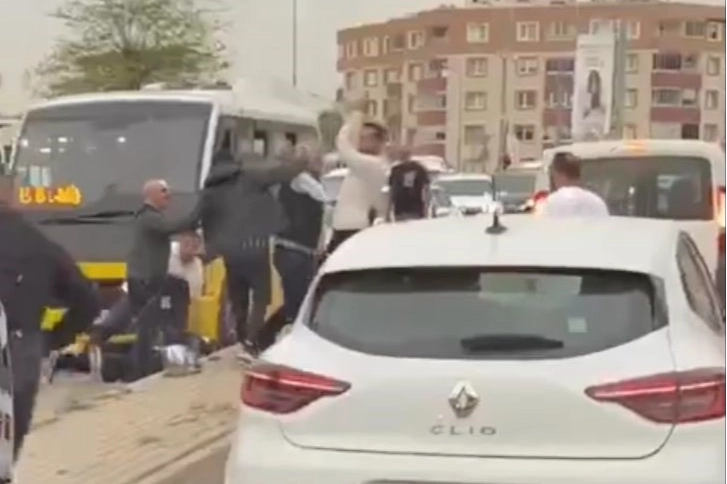 Olay, Nilüfer ilçesi Odunluk Mahallesi’nde meydana geldi. İddiaya göre, yolcu dolu araçla seyir halinde olan iki minibüs şoförü; yol verme tartışmasına girdi. Artan tansiyon sonrası araçtan inen taraflar ne yolculara, ne de trafiğe aldırış etmeden bir anda kavgaya tutuştu. İki şoförün birbirine yumruk ve sopayla saldırdığı anlar kameraya yansırken, kavgayı çevredekiler güçlükle ayırdı.