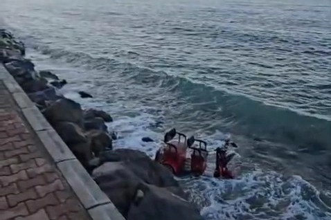 Bursa’nın Mudanya ilçesi Altınkum sahil yürüyüş bandında elektrikli motosikletle meydana gelen kaza yürekleri ağza getirdi. Seyir halindeki üç tekerlekli elektrikli motosiklet, kontrolden çıkarak denize uçtu.