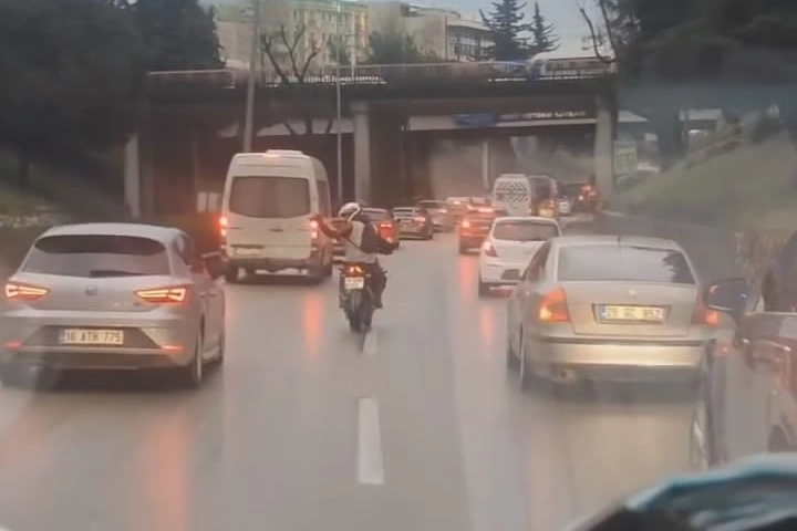 Trafiği ‘Fermuar’ sistemiyle açmaya çalışan ve ambulansa adeta eskortluk yapan motosiklet sürücüsünün örnek davranışı, kameraya yansıdı.