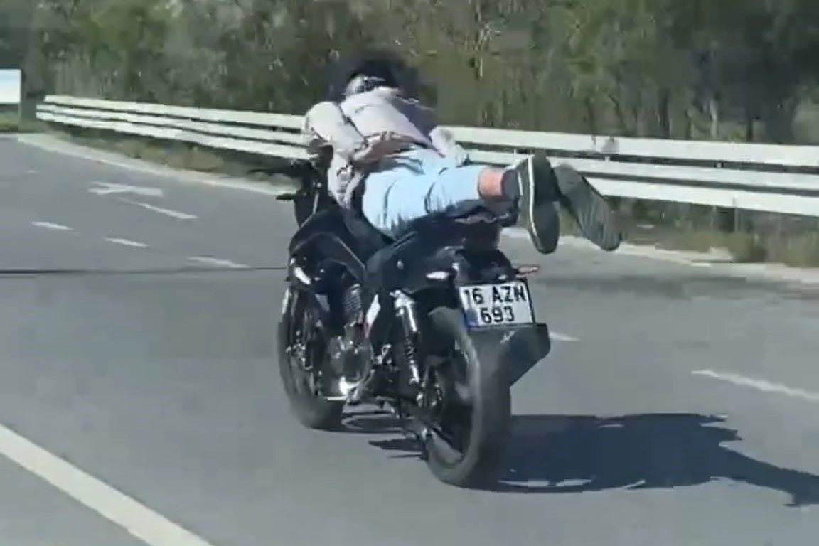 Bursa'da anayol üzerinde motosikleti yatarak kullanan aday sürücü Trafik Denetleme Şube Müdürlüğü ekipleri tarafından tespit edildi.