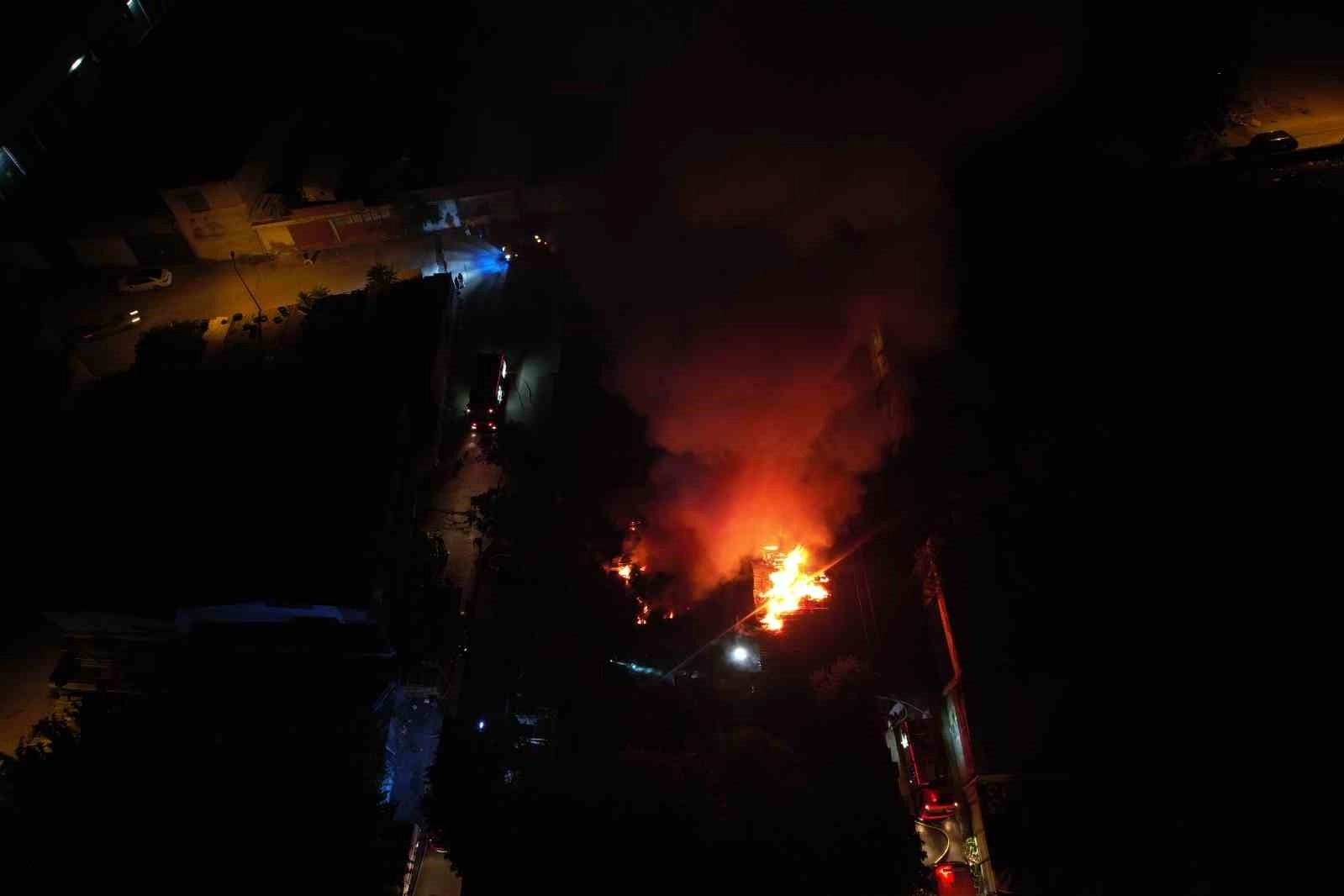 Alevlerin geceyi aydınlattığı yangının çıkış sebebi araştırılıyor.