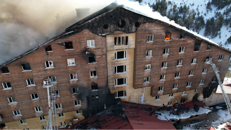 Dün sabaha karşı saat 03.30 sıralarında kent merkezine 45 kilometre uzaklıktaki Kartalkaya Kayak Merkezi’nde yangın çıktı. Grand Kartal Otel’de çıkan yangın oteli adeta küle çevirdi. Yangın sebebiyle 76 kişi hayatını kaybetti. İçişleri Bakanı Ali Yerlikaya yangınla ilgili 9 kişinin gözaltına alındığını açıkladı. Sabahın ilk ışıklarıyla birlikte AFAD ekipleri bölgede hazırlıklara başladı. AFAD ve beraberindeki uzman ekipler, bugün son kez yanan otelde arama çalışması yapacak. Ayrıca Bakan Yerlikaya, hayatını kaybeden 76 kişiden 45’inin cenazelerini yakınlarına teslim ettiklerini dile getirmişti. Bugün Adli Tıp Kurumu’ndaki uzman ekiplerin incelemesi sonrasında cenazeleri tespit edilemeyen vatandaşlar için çalışma yapılacak.