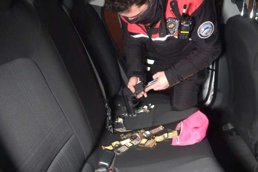 Merkez Osmangazi İlçesinde devriye Bursa’da yunus polislerini görünce otomobilleriyle kaçan 4 şüpheliden 3’ü kovalamaca sonucu yakalandı. Araçta arama yapan ekipler, 1 şahsın 2 yıl 8 ay kesinleşmiş hapis cezası olduğunu öğrenirken, araç içinde çok sayıda marka saat ve tabanca buldu. atan yunus polis ekipleri, şüphe üzerine bir aracı durdurmak istedi. Fakat durmak yerine içinde bulundukları 16 ATN plakalı araçla kaçmayı tercih eden 4 kişi yaklaşık 5 kilometrelik kovalamacanın ardından ara sokakta sıkıştı. Daha fazla otomobille ilerleyemeyen şahıslar bu kez de yaya olarak kaçmaya çalışsa da polis ekipleri 4 şüpheliden 3’ünü yakalamayı başardı. Şüphelilere kimlik sorgusu yapan ekipler, ise Kıvanç S.’nin 11 ayrı suçtan dosyası olduğunu ve 2 yıl 8 ay kesinleşmiş hapis cezası olduğunu öğrendi. Araçta arama yapan ekipler, çok sayıda marka saat ve tabanca ele geçirdi. Şüpheliler, polis ekiplerince ifadesi alınmak üzere gözaltına alınırken, kaçan diğer şüphelinin yakalanması için çalışma başlatıldı.