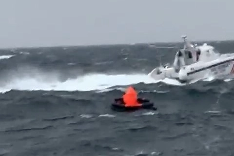 Ekipler, fırtınalı havada ulaştıkları kurtarma bölgesinde boş bir can salı tespit ettiler. O anlar ise kamera ile an be an kaydedildi.