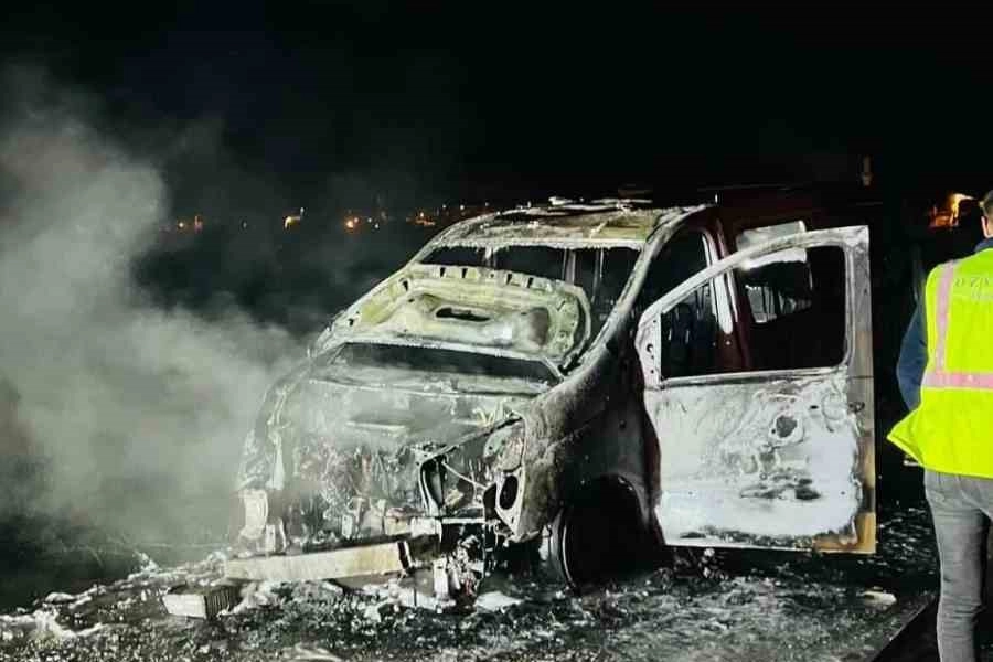 Bursa’nın Karacabey ilçesinde seyir halindeyken alev alan araç kullanılamaz hale geldi.