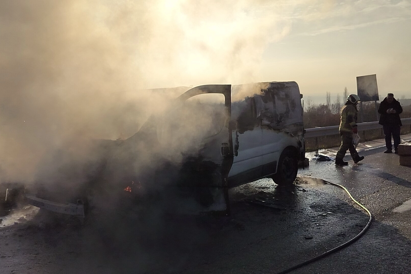 Alınan bilgilere göre Bilal A. (53) idaresindeki 41 AJF 951 plakalı içinde mutfak mefruşatı ile mutfak malzemeleri bulunan minibüs Yalova istikametine doğru seyir halindeyken Orhangazi Süpürgelik mevkiinde motor bölümünden dumanlar çıkmaya başladı.