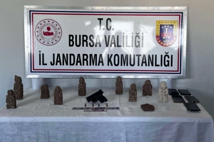 Gerçekleştirilen operasyonda; L.D (E,56)- Y.D. (E,55) - E.E.(E,44) - M.Ö. (E,50) - H.A. (E,35) isimli şahıslar gözaltına alındı. Bu şahıslar ile birlikte; çeşitli medeniyetlere ait tarihi eser niteliğinde olduğu değerlendirilen; (9) adet heykel, (1) adet obje, ve (1) adet ruhsatsız tabanca ile bu tabancaya ait (5) adet fişek ele geçirildi. Yakalanan şahıslar Gemlik Cumhuriyet Savcılığının talimatı doğrultusunda adli makamlara sevk edildi.