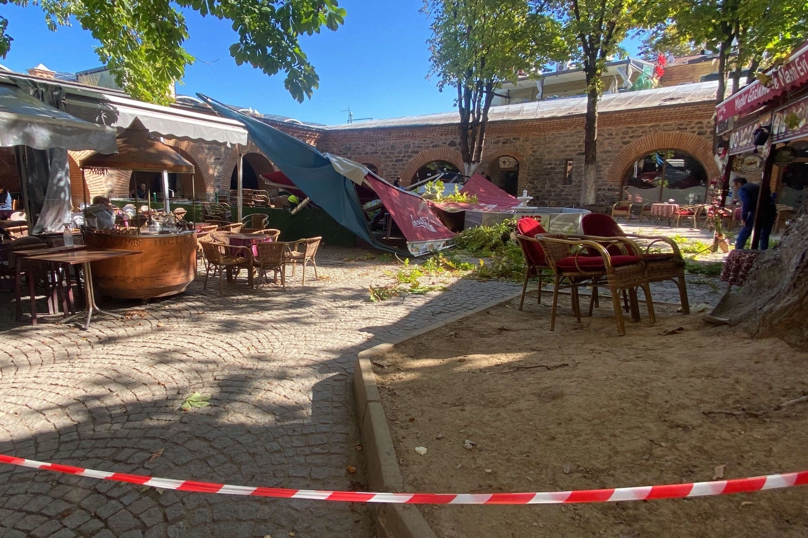 Olay, merkez Osmangazi ilçesi Heykel semtinde bulunan Tarihi Koza Han’da meydana geldi. Edinilen bilgiye göre, çürüyen çınar ağacı gövdesinden ayrılarak aşağıda bulunan kafenin üzerine devrildi. Kafede ve avluda kimsenin bulunmaması muhtemel bir faciayı önledi. İhbar üzerine bölgeye Bursa Büyükşehir Belediyesi Park ve Bahçeler ekipleri sevk edildi. Devrilen çınar, ağaç kesme makinesiyle kesilirken, kafe kullanılamaz hale geldi. Polis ekipleri olayla ilgili tahkikat başlattı.