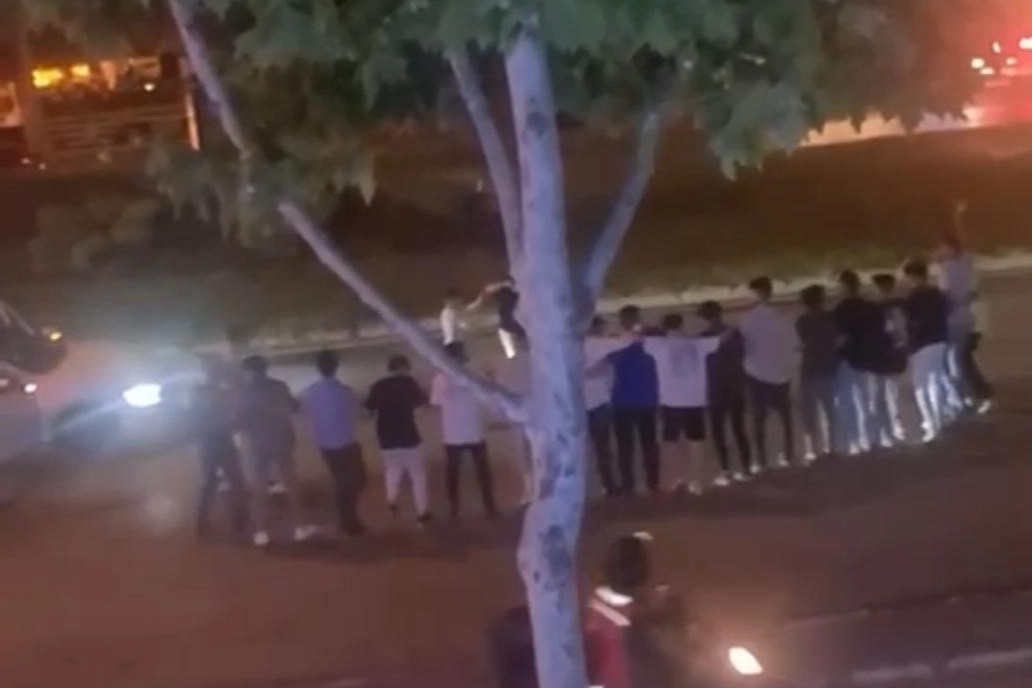Merkez, Osmangazi ilçesinde bir grup kalabalık seyir halindeki araçlarıyla yolu kesip araçlarından indiler. Daha sonrasında kaldırım kenarında buluşan kişiler halaya çekmeye başladılar. Çevredekilerin korna ile uyarılarına aldırmayan kalabalık, polis ekiplerinin sirenini görünce hızla kaçmaya başladılar. O anlar ise kameraya saniye saniye yansıdı.