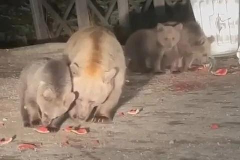 Uludağ sık çam ormanları arasında yüzlerce yabani hayvana ev sahipliği yaparken, Sarıalan bölgesinde karnı acıkan ayı ailesi çöp konteynerlerini karıştırıp yiyecek aradı O anlar orada bulunan vatandaş tarafında kayıt altına alındı. Çöp konteynerında buldukları yiyecekler ile karınlarını doyuran ayı ailesi oradan uzaklaştı.