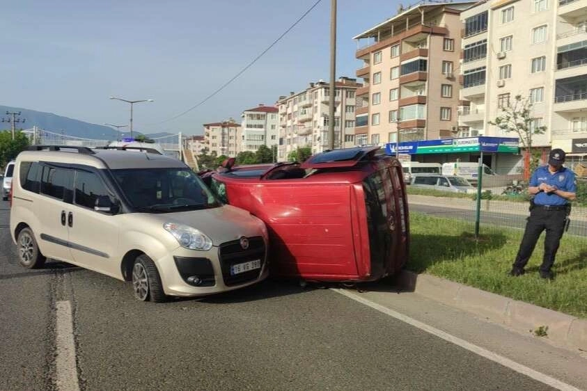 Orhangazi’de sabah saatlerinde ana yol üzerinde meydana gelen trafik kazasında yol verme tartışması yaşayan iki araç seyir halindeyken kaza yaptı. Hafif ticari araçlardan birisi devrilirken araçtaki 3 kişi yaralandı. Kaza, sabah 07.00 sıralarında Orhangazi’de Bursa-Yalova karayolu, terminal yakınlarında meydana geldi. Bursa istikametinden Yalova istikametine doğru seyir halinde olan Enes Kazak idaresindeki 16 VG 390 plakalı hafif ticari araç ile aynı yönde ilerlemekte olan Sebahattin Karakaş (44) idaresindeki 16 VZ 053 plakalı hafif ticari araç sürücülerinin yol verme tartışmaları sonrasında hareket halindeyken birbirlerine çarparak orta refüje çarptı. Sebahattin Karakaş idaresindeki hafif ticari araç çarpmanın şiddeti ile devrilip sürüklendi. Kazada devrilen araçtaki sürücü Sebahattin Karakaş ile birlikte aynı araçta bulunan Hasan Yanar (48) ve Oğuzhan Yanar (24) yaralandı. Kaza sonrasında olay yerine gelen sağlık çalışanları, ilk müdahalenin ardından yaralıları ambulanslarla Orhangazi Devlet Hastanesine kaldırıldı. Kaza sebebiyle ana yolda trafik bir süre tek şeritten sağlandı. Kaza yapan araçların olay yerinden kaldırılması ile trafik normale döndü. Kazayla ilgili tahkikat devam ediyor.