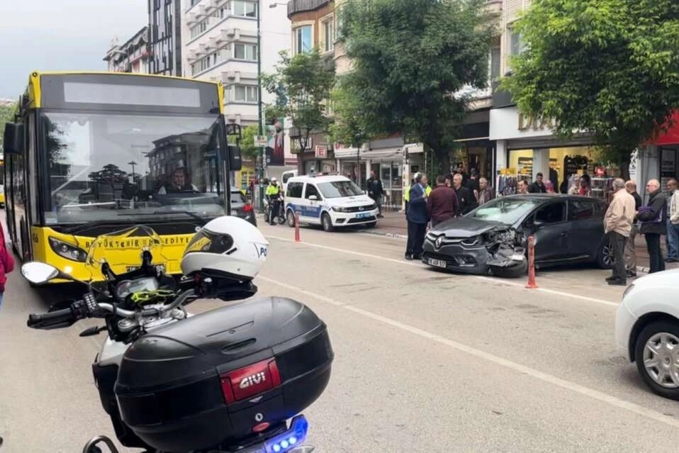 Bursa’da yolcu indirmek için durağa yanaşan halk otobüsüne ters şeritten gelen otomobil çarptı. Kazada otomobil sürücüsü yaralanırken, çevredeki vatandaşlar korku dolu anlar yaşadı. Kaza, merkez Osmangazi ilçesi Atatürk Caddesi üzerinde meydana geldi. Edinilen bilgiye göre, güzergahı üzerinde yolcu indirmek isteyen otobüs şoförü durağa yanaştı. Bu esnada sürücüsünün kontöründen çıkan 16 AOR 517 plakalı otomobil ters şeritte duran halk otobüsüne çarptı. Kazanın şiddetiyle otomobil sürücüsü yaralanırken, hem otobüsteki hem de çevredeki vatandaşlar korku dolu anlar yaşadı. Yaralı sürücü kendisi için gelen ambulansla hastaneye kaldırılırken, trafikte ise aksamalar yaşandı. Olayla ilgili soruşturma devam ediyor.