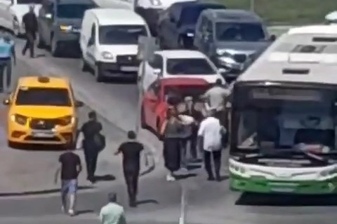 Birbirleriyle yumruk yumruğa giren iki şoförü, vatandaşlar ve otobüsteki yolcular ayırdı. Yaşanan anlar ise saniye saniye vatandaşın cep telefonuna yansıdı. Uzun süre trafiğe kapalı kalan yoldaki diğer araçlarda, tepkisini kornalara basarak gösterdi.