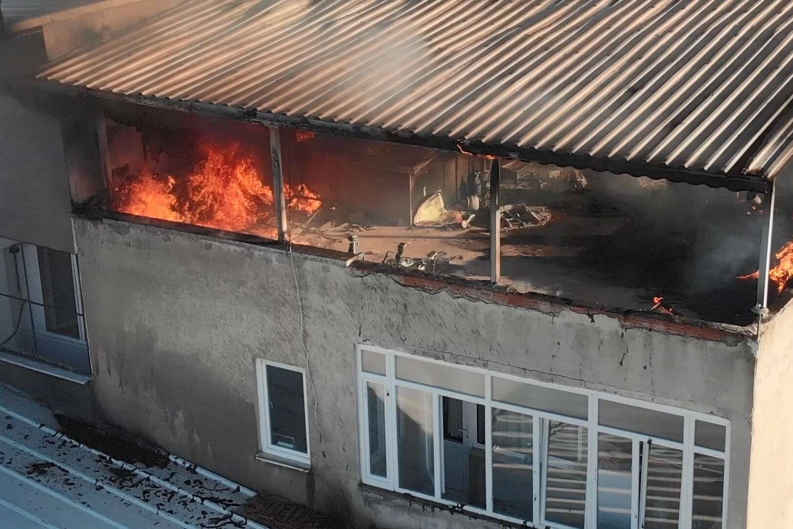 Yangın sonrası çatı katı kullanılamaz hale gelirken, polis, yaşanan olayla ilgili çalışma başlattı.