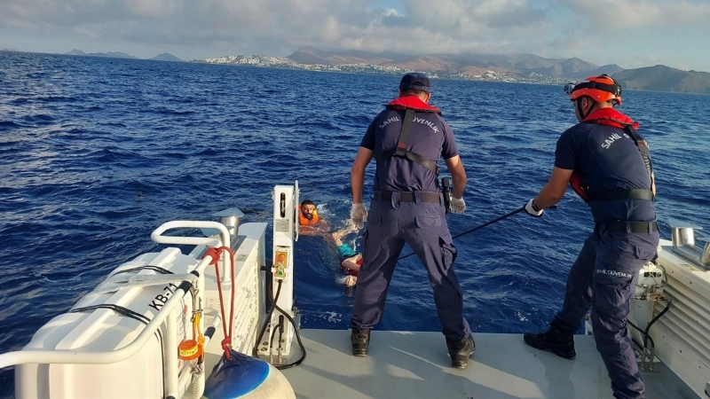 Bodrum’dan denize giren 5 düzensiz göçmen, Yunanistan’ın İstanköy Adası’na yüzerek geçmeye çalıştı. Göçmenler, Sahil Güvenlik Botu (KB-71) tarafından tespit edildi. Ekiplerce yakalanarak bota alınan göçmenler limana getirildi. 5 düzensiz göçmen, işlemlerinin ardından Muğla İl Göç İdaresi Müdürlüğü’ne gönderildi.