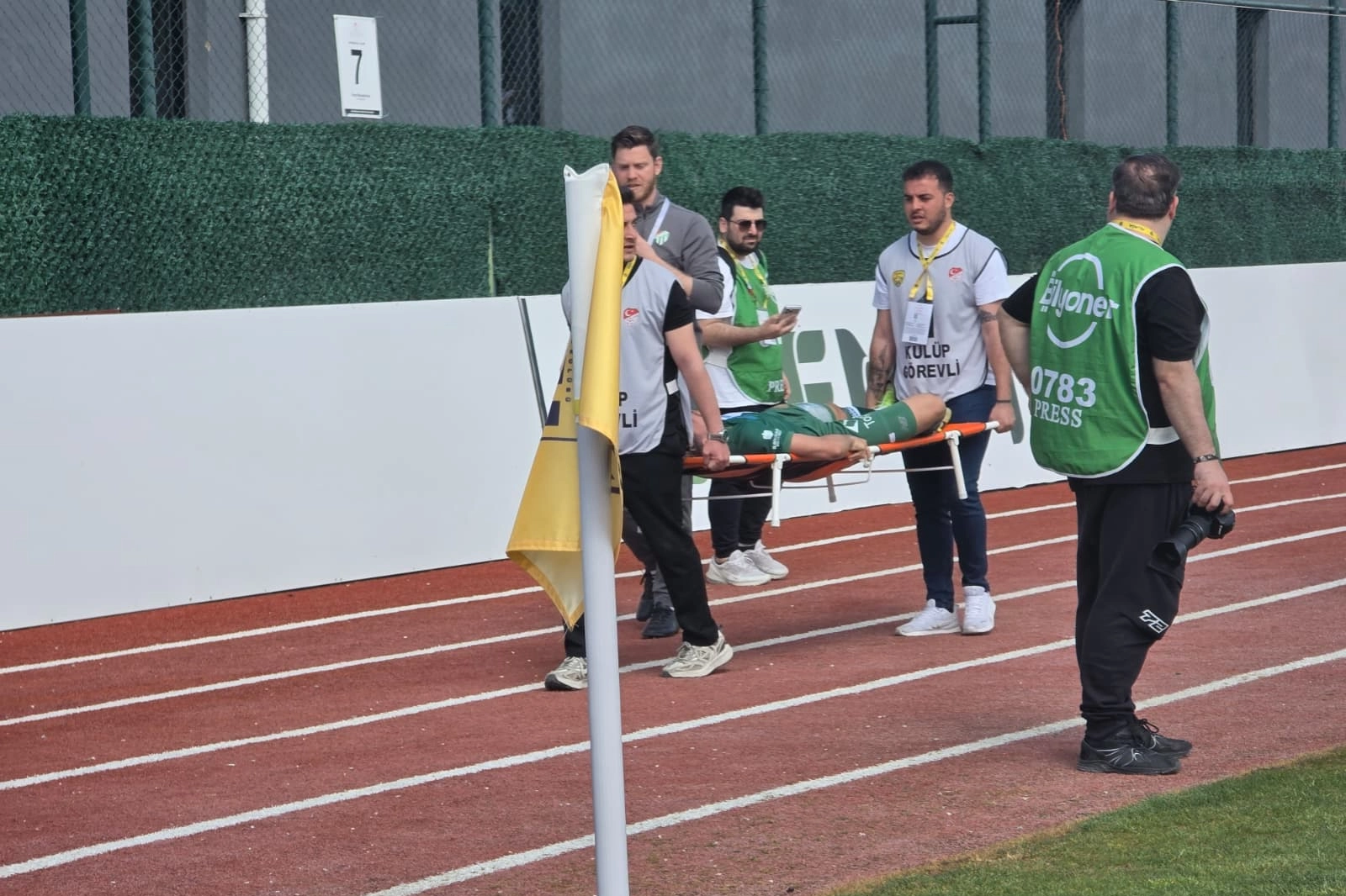 Bursaspor-Aliağa FK maçının 38. dakikasında Bursasporlu Ertuğrul Furat sakatlık yaşadı.