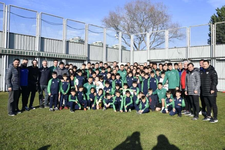 Bursaspor’un şampiyon kadrosunda yer alan Sercan Yıldırım, yeşil-beyazlı kulübü ziyaret etti. Teknik Direktör İsmail Ertekin ve futbolcularla bir araya gelen Sercan Yıldırım, takıma kalan maçlarında başarılar diledi. Sercan Yıldırım, futbol akademisinde yer alan minik kramponları da Özlüce İbrahim Yazıcı Tesisleri’ne getirdi. Geleceğin futbolcuları, hayallerini kurduğu Bursaspor tesislerinde futbolcularla bol bol muhabbet ederek, fotoğraf çektirdi.