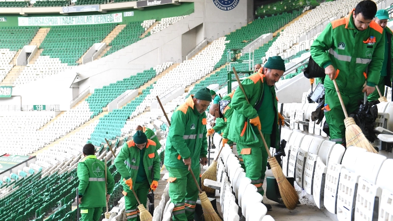 Osmangazi Belediyesi Temizlik İşleri Müdürlüğü ekipleri, bu hafta oynanan ve Bursaspor’un 2-0 kazandığı Ergene Velimeşespor karşılaşmasının ardından temizlik çalışması gerçekleştirdi. Stadyum çevresinde, koridorlarda ve tribünlerde iki gün boyunca temizlik çalışması yürüten ekipler, 43 bin 361 kişi kapasiteli dev stadyumu baştan aşağı temizleyerek bir sonraki karşılaşma için hazır hale getirdi.
